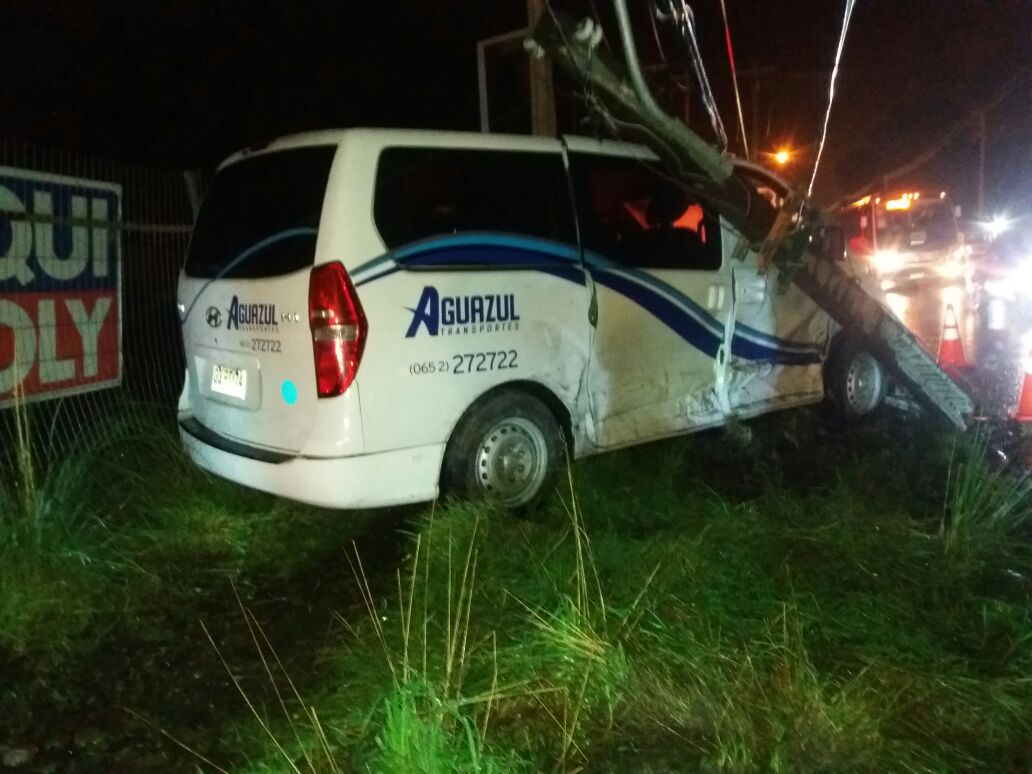 Pasadas las 23 horas de este miércoles, 10 personas resultaron lesionadas tras colisión de un furgón de la empresa Aguazul con poste de alumbrado público en ruta Alerce – Puerto Montt. Según la información recopilada hasta el momento, los lesionados serían trabajadores del supermercado Jumbo de la capital regional.