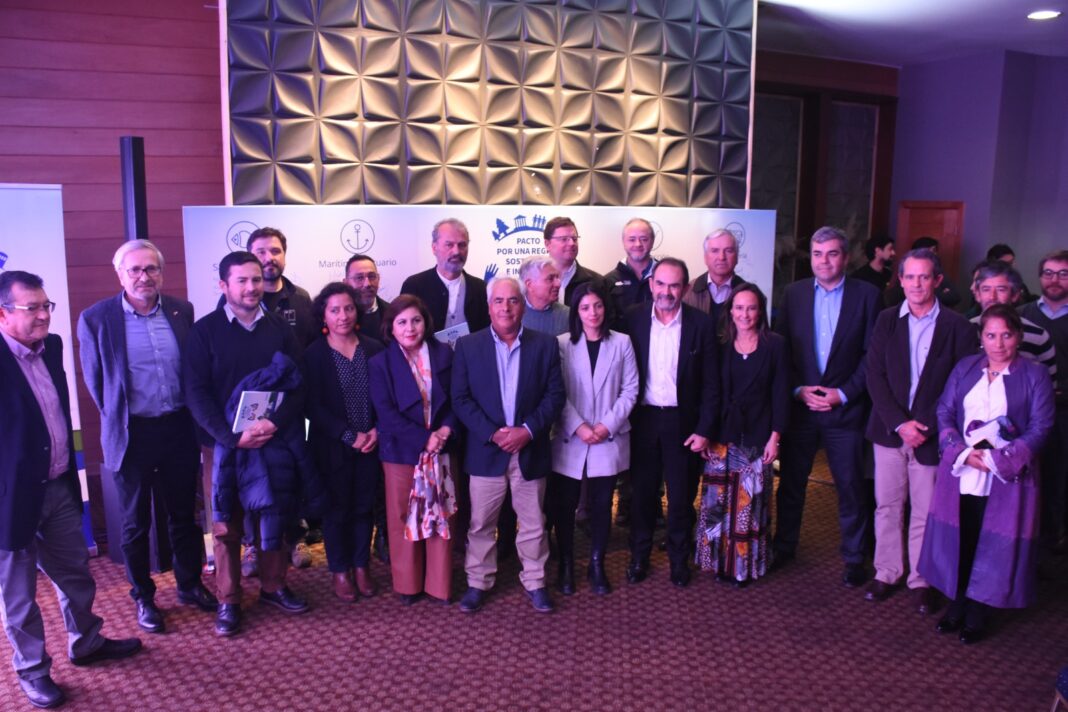 Distintos actores públicos y privados suscribieron simbólicamente un compromiso para formar parte del “Pacto por una Región Sostenible e Inclusiva” impulsado por el gobernador Patricio Vallespín y el Consejo Regional.