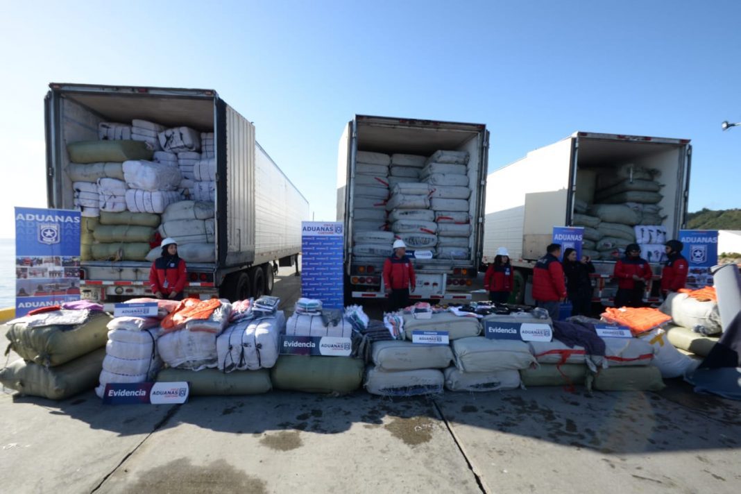 El procedimiento fue realizado por fiscalizadores del Servicio Nacional de Aduanas en el puerto Oxxean de Puerto Montt, a partir de un trabajo conjunto realizado con otras Aduanas y las policías y que implicó análisis de inteligencia para concretar este importante hallazgo.Al respecto el intendente de la región de Los Lagos Harry Jürgensen, destacó el trabajo conjunto realizado por todas las instituciones relacionadas al control de ingreso a Chile, que lograron detectar este importante ingreso de productos a la zona, que viene en desmedro del comercio legal.Fueron tres contenedores de productos varios por donde se pretendía hacer ingreso al país este contrabando, que se suman a otros decomisos ya realizado en esta zona, tanto en los pasos fronterizos como en los puertos de embarque de la región de los lagos.