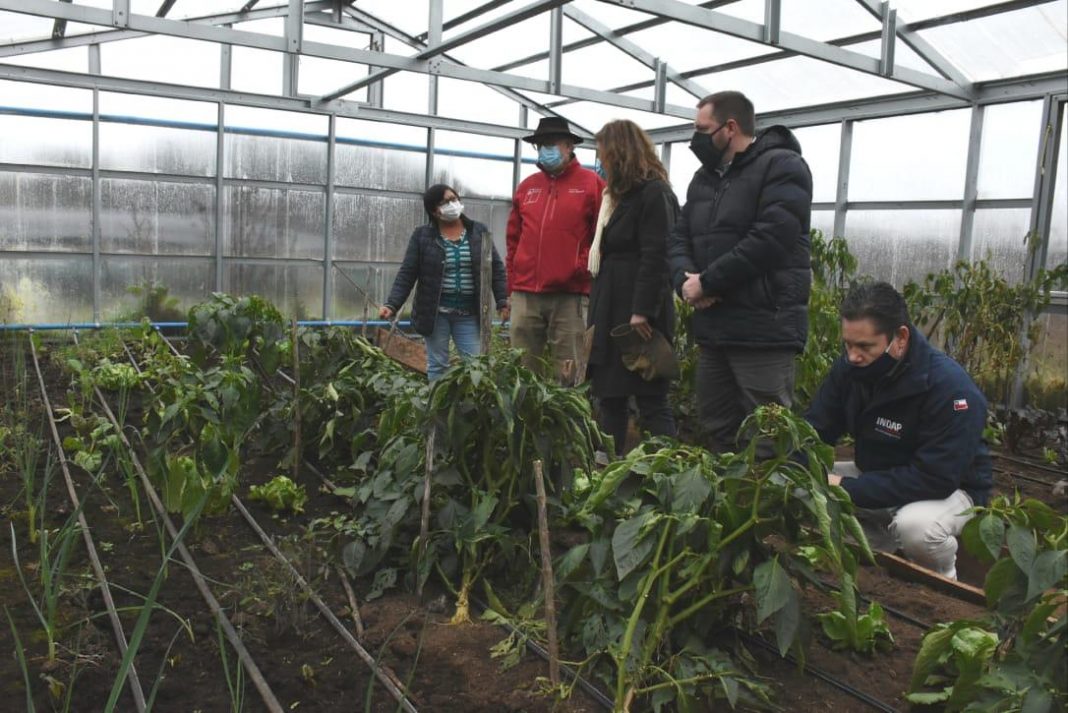 Yolanda Mansilla, usuaria INDAP desarrolla la producción de hortalizas y procesados como pastas de ajo y ají además de la crianza de ovinos en Chapuco y recibió la visita de las autoridades regionales, de agricultura, Indap y municipal para dar a conocer su trabajo.
