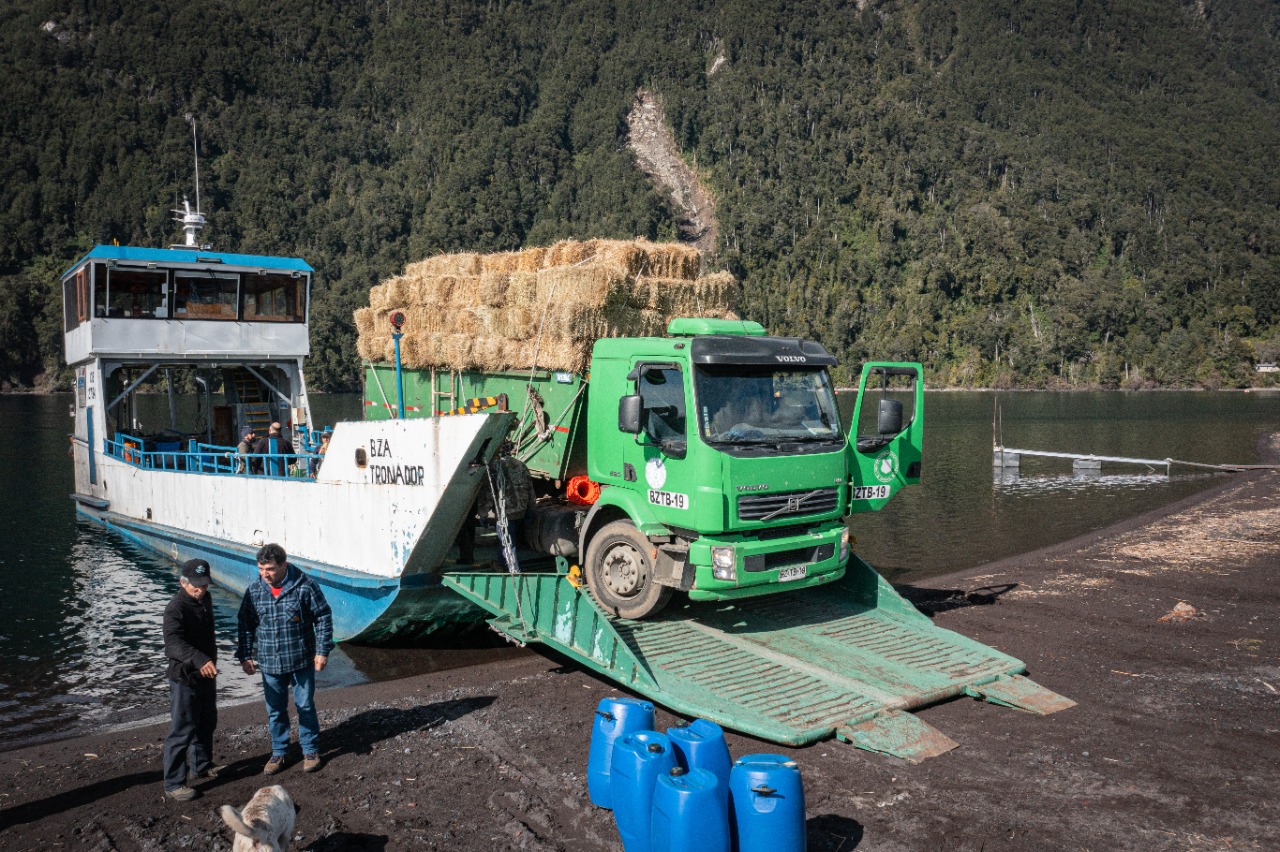 La ayuda fue trasladada en un camión de la Municipalidad de Puerto Varas que debió cruzar el lago Todos Los Santos en una barcaza, con el fin de ser entregada a los vecinos de la rivera del lago.