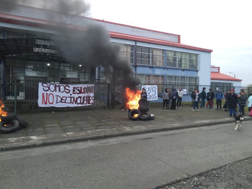 Con quema de neumáticos en el frontis del establecimiento, alumnos y apoderados del Instituto Forjadores de Alerce iniciaron esta mañana una manifestación en rechazo a las pésimas condiciones en las que se encuentra el recinto educacional.