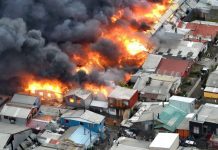Bomberos combate incendio que se propaga rápidamente en Concepción
