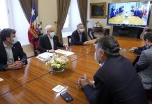 El Presidente Sebastián Piñera se reunió este sábado en La Moneda con los timoneles de los partidos oficialistas (UDI, RN, Evópoli y el PRI).