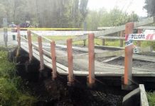 Puente de madera cede en su base y genera corte de ruta en U-22...