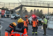 Camión tolva destruye pasarela cerca de Curicó: Ruta 5 Sur se encuentra cortada