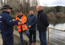 En visita a la zona, el Intendente de la región de Los Lagos, Harry Jürgensen, junto al seremi de Obras Públicas, James Fry y...