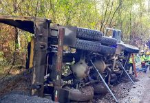 Camión volcó en el sector de Huillinco dejando herido a un funcionario municipal de...