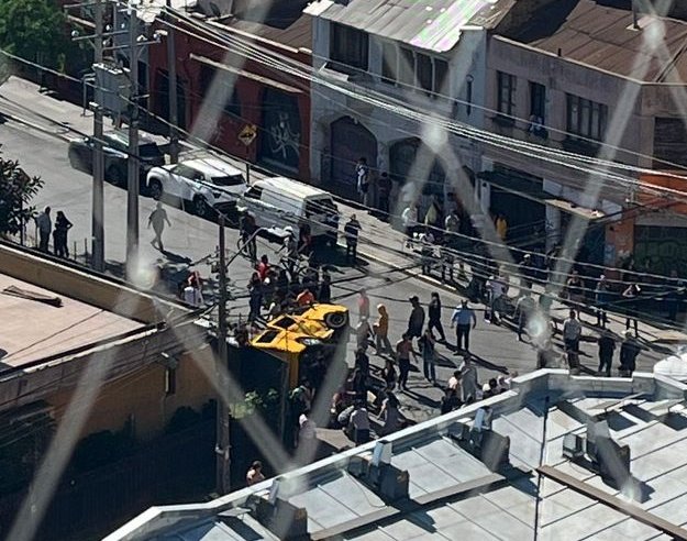 Carabineros detalló que el hecho ocurrió en Santos Dumont con Humorista Carlos Helo, donde el vehículo que transportaba a seis estudiantes resultó volcado tras el impacto.