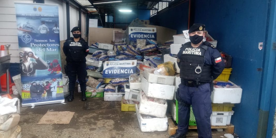 De acuerdo a la cantidad de los productos incautados, se detalla que son más de 25 mil unidades de recurso Loco, 170 kilos de Salmón, 47 kilos de centolla, 131 kilos de camarones, 404 kilos de merluza, 100 kilos de congrio, 19 kilos de Jibia, 12,45 kilos de Pulpo, 444 kilos de jaiba y 14 kilos de Atún, los que fueron derivados a un vertedero y el sujeto fue puesto a disposición del Tribunal de Garantía de Ancud.