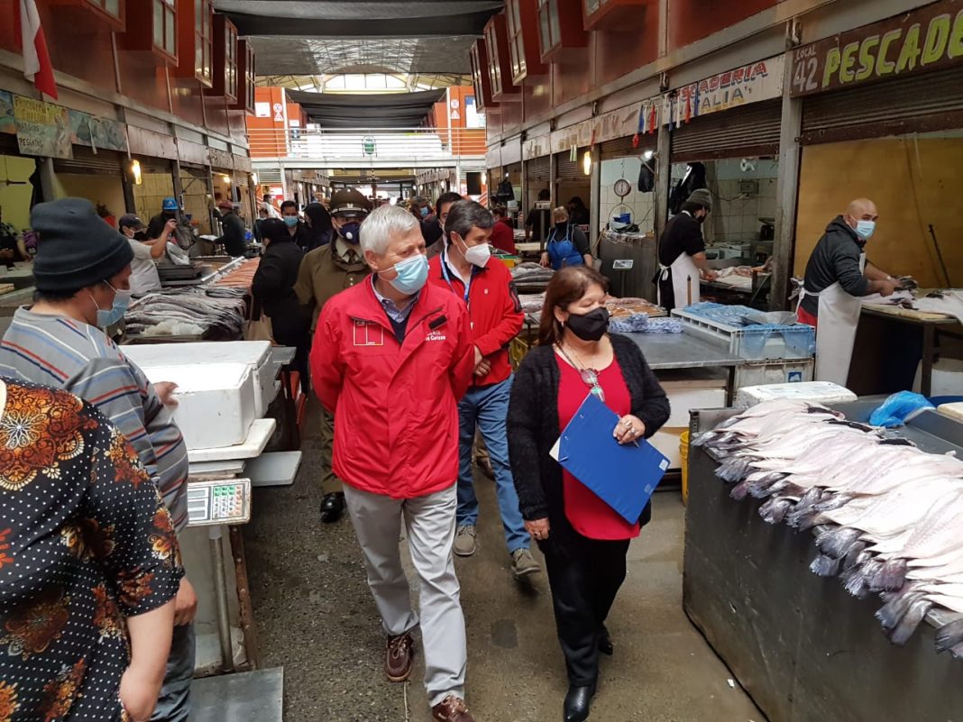 Durante esta jornada el Intendente Regional Carlos Geisse junto al Seremi de Salud Alejandro Caroca visitaron la Feria Presidente Ibáñez de Puerto Montt para reforzar el llamado a consumo seguro de productos del mar y medidas de prevención Covid 19 en Semana Santa.