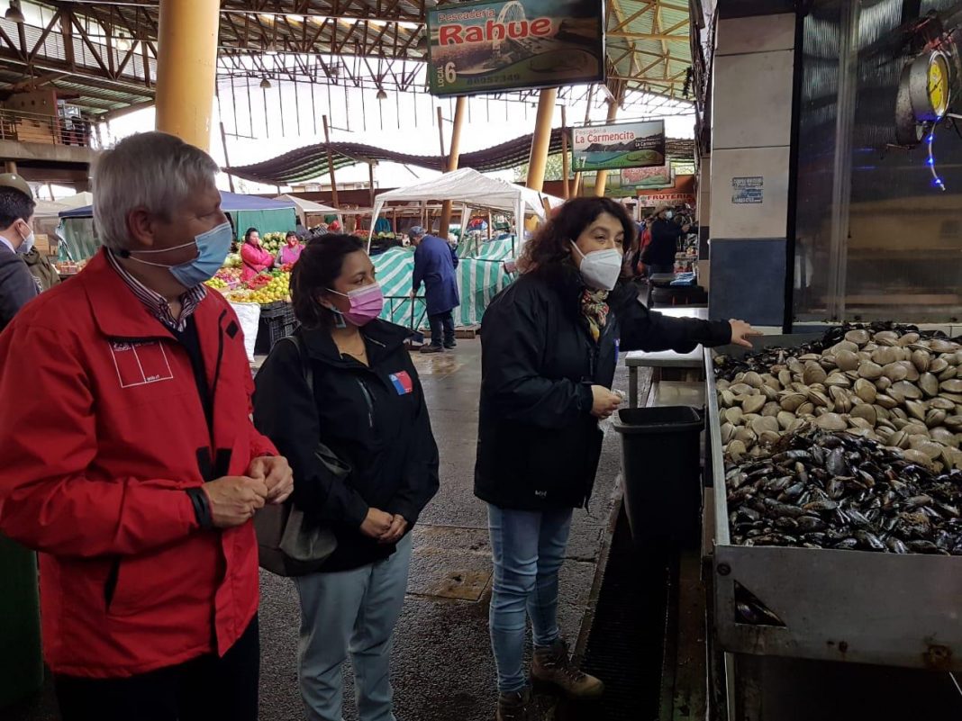 Hasta la Feria Rahue en Osorno llegó el Intendente Regional, Carlos Geisse y la jefa de la oficina provincial de Osorno de la Seremi de Salud, Vania Rojas, para realizar un recorrido por las pescaderías del lugar, las que aumentan sus ventas por la semana santa.La idea era fiscalizar que se cumplieran las medidas sanitarias para vender estos productos, en el caso de los mariscos que estén libres de marea roja, con los etiquetados correspondientes, de los que se extraen muestras para analizar su condición.Según indicó la autoridad provincial de la Seremi de Salud, Vania Rojas, hasta el momento se han cumplido los parámetros y se seguirá fiscalizando en los distintos puntos de venta de pescados y mariscos durante todo el fin de semana.Aún no está definido si se instalará un cordón sanitario en la región con el fin de fiscalizar y reducir la movilidad para la entrada y salida de personas de la zona, lo que, según el Intendente Regional Carlos Geisse, aún no se descarta. Este será tema a tratar en las reuniones entre las diferentes autoridades regionales que se llevarán a cabo esta tarde y mañana por la mañana.En cuanto a las ventas de pescados y mariscos, los locatarios aseguraron que estas han bajado respecto de los años anteriores producto de la reducción en la movilidad de las personas y también en la escasez de los propios productos.Eso sí, aseguraron que atenderán durante todo el fin de semana largo, entre las 7 de la mañana y las 7 de la tarde.
