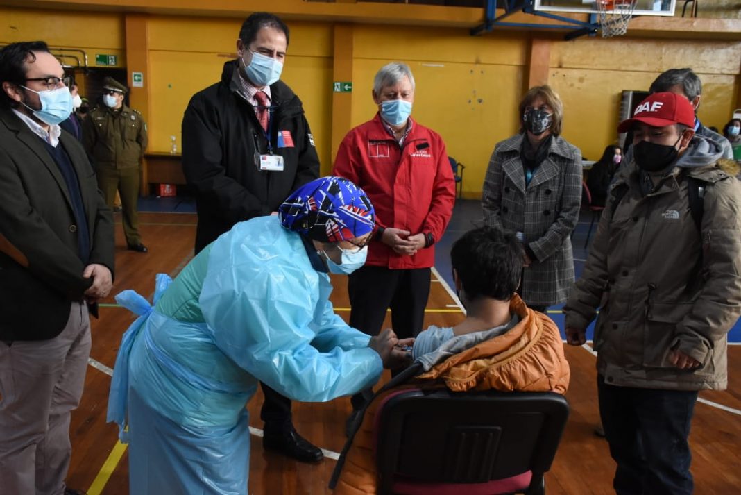 Durante esta jornada las autoridades regionales encabezadas por el Intendente regional y el seremi de Salud se trasladaron a la comuna de Llanquihue para reforzar y acompañar el proceso de vacunación contra el Covid-19 de adolescentes de 12 a 17 años. Autoridades regionales refuerzan vacunación de adolescentes en la comuna de Llanquihue En la ocasión, el Seremi de Salud, Alejandro Caroca, hizo un llamado a los adolescentes y sus familias a aprovechar la oportunidad de vacunarse contra el virus.   El Seremi Caroca recordó que prácticamente el 100% de los pacientes que están graves en las UCI de la red hospitalaria no están vacunados o tienen una vacunación incompleta. Por lo tanto, hay una cantidad importante de rezagados que están dentro del 20% de los que no se han vacunado por diferentes motivos y que están en grave riesgo. Autoridades regionales refuerzan vacunación de adolescentes en la comuna de Llanquihue Por su parte, la Directora de Salud Municipal de la comuna de Llanquihue, Bernardita Almonacid, subrayó que la campaña de vacunación se ha llevado con esfuerzo, cifrando en un 68% la cobertura de la vacunación con dos dosis en la comuna de Llanquihue.   Autoridades regionales refuerzan vacunación de adolescentes en la comuna de Llanquihue En tanto, el Intendente, Carlos Geisse, destacó que la comuna de Llanquihue es una de las comunas que mejor ha avanzado en su campaña de vacunación, por lo que quisieron acompañar el proceso enfocado en los menores de 12 a 17 años.   El Intendente regional puntualizó que esta es una gran noticia, ya que los jóvenes, pese a su edad, si se enferman puede ser que no tengan mayor complicación, sin embargo, hay algunos que sí pueden presentan mayor compromiso. Autoridades regionales refuerzan vacunación de adolescentes en la comuna de Llanquihue Por esta razón el Jefe Regional reiteró el llamado para que toda la población se pueda vacunar, destacando que a nivel país se registra el 80% de la población vacunada y con este nuevo proceso de vacunación la población va a estar más protegida frente al virus.
