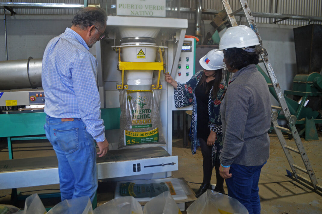 Seremis de Energía y Medio Ambiente verifican stock del producto para el invierno Una visita a la planta de proceso de pellet Puerto Verde Nativo realizaron autoridades regionales para interiorizarse de su funcionamiento y verificar el stock para el invierno. En la planta se fabrica pellet a partir del chacay, una especie exótica, invasora, que compite con la flora nativa y que en los últimos años se transformó en un problema, producto de su alta combustión, que contribuye a la proliferación de incendios forestales. Así lo destacó el Gerente de la empresa de pellet Puerto Verde Nativo, Cristian Machuca, quien relató que el propósito de usar chacay es abastecer de pellet a la zona, como también salvar y recuperar la flora nativa. El empresario añadió que el producto está certificado respecto a su calidad. En tanto, debido a los problemas de abastecimiento de pellet que se registraron durante el invierno pasado, la Seremis de Energía, Liliana Alarcón, destacó el uso del chacay para la confección de pellet. En la visita a la planta de producción de pellet participaron funcionarios del Gobierno Regional y de la Seremi del Medio Ambiente, con el fin de verificar el stock disponible de este producto para los meses de invierno.