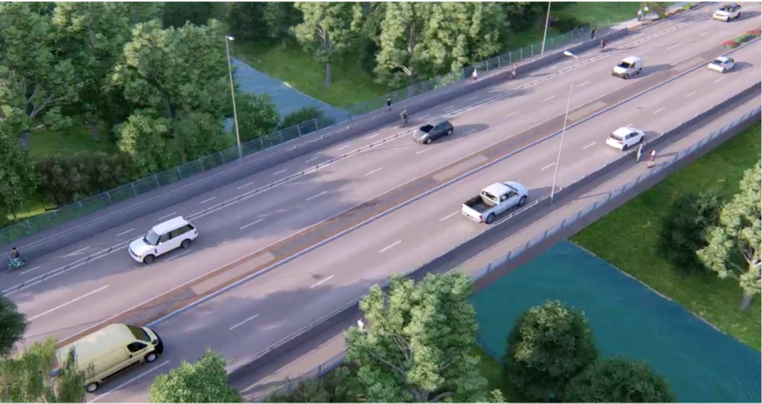 La rectificación del trazado del Camino a Pilauco, desde Luis Cruz Martínez hasta el Puente Bulnes, con una calzada doble de 2 pistas por sentido, con veredas y ciclovías.