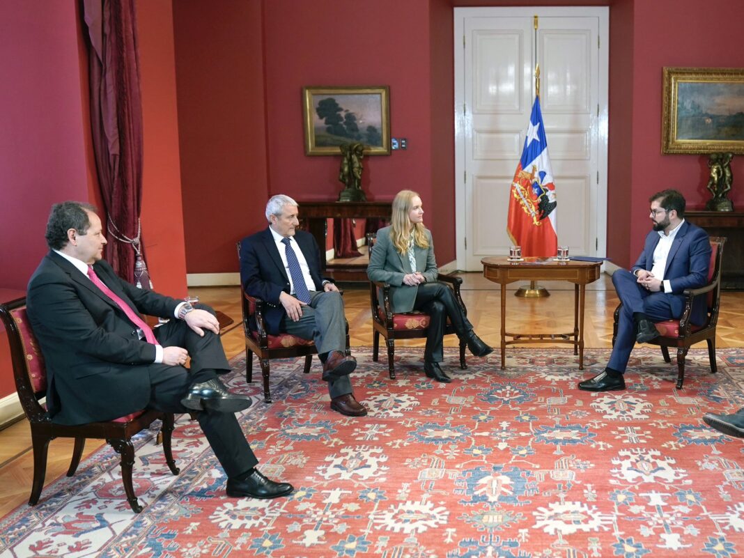 El Presidente de la República, Gabriel Boric Font, sostuvo una reunión con la presidenta y el vicepresidenta del Consejo Constitucional, Beatriz Hevia y Aldo Valle, en el Salón Rojo del Palacio de La Moneda la mañana de este lunes. La cita en la sede de gobierno fue de carácter protocolar. El Mandatario solicitó participar de la instalación del órgano redactor el pasado 7 de junio. En la ceremonia pronunció un discurso en el que destacó que a Chile “le hará bien cerrar este ciclo”. Además de la reunión con Boric, la mesa, encabezada por la republicana Beatriz Hevia, tendrá un encuentro con los presidentes del Senado, Juan Antonio Coloma, y de la Cámara de Diputados, Vlado Mirosevic, y posteriormente, con el presidente de la Corte Suprema, Juan Eduardo Fuentes Belmar. Fuente: La Tercera