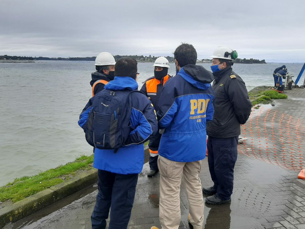 Diversas son las diligencias que se realizan en torno al hundimiento del muelle flotante de la empresa portuaria Cabo Foward en el sector San José de la comuna de Calbuco, que recordemos se hundió con más de 300 toneladas en alimento para salmón.