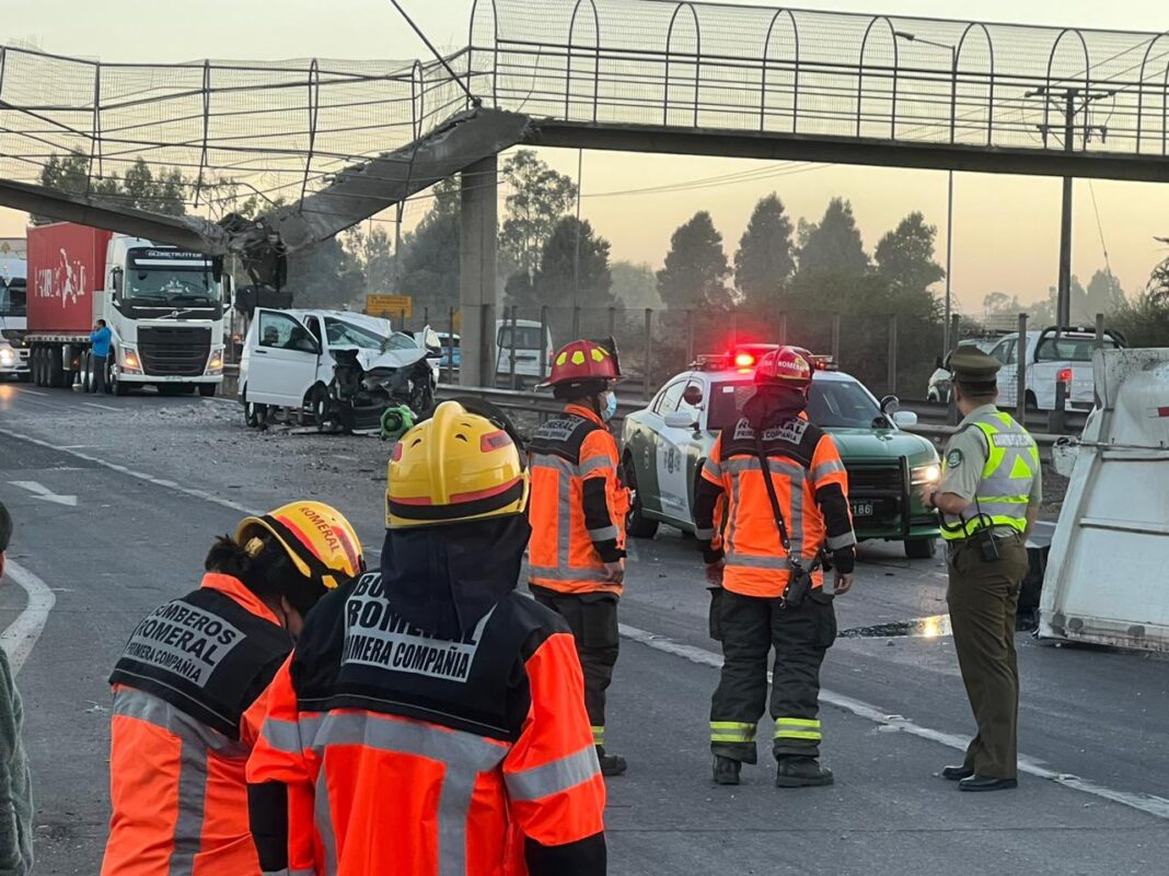 En horas de la mañana de este martes, un camión tolva destruyó la pasarela Quilvo, a la altura Puente Teno, en el kilómetro 180 de la Ruta 5 Sur, en las cercanías de Curicó.
