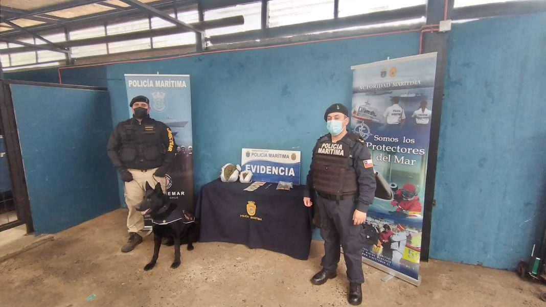 Durante patrullajes preventivos llevados a cabo durante esta jornada en la rampa de conectividad de Chacao, acceso norte a la Isla Grande de Chiloé, la Policía Marítima con apoyo de binomio canino detectó la sustancia ilícita.