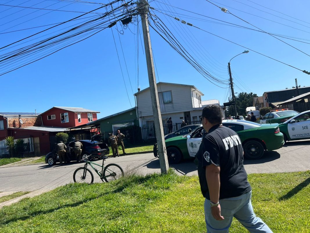 En medio de la persecución, además, intentaron atropellar a uno de los oficiales, quien realizó dos disparos con su arma de servicio. El prefecto (s) de Osorno, teniente coronel Marcelo Salas, detalló que el operativo culminó en el sector de Rahue Alto, cuando fueron interceptados a la altura del Parque Residencial Reina Luisa.. En el procedimiento se incautaron varias armas blancas, en particular machetes y cuchillos, los cuales fueron puestos a disposición de la Fiscalía. Además de eso, se presume que los detenidos portaban algún tipo de droga, ya que habrían lanzado una bolsa con una sustancia blanca durante su huída.#Osorno Una situación irregular ocurrió esta tarde en el sector del Parque Residencial Reina Luisa, en Rahue Alto.