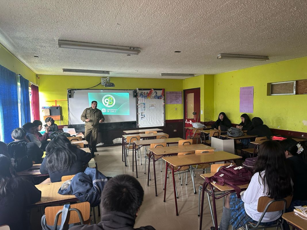 El Suboficial Mayor Aliro Ahengo, de la Escuela de Formación de Carabineros de Puerto Montt, encabezó una charla informativa sobre ciberbullying y grooming en el Colegio Mauricio Hitchcock de Contao, establecimiento que imparte enseñanza hasta cuarto medio. La actividad buscó concientizar a estudiantes sobre los riesgos en redes sociales y el uso responsable de las plataformas digitales, en un contexto donde el acoso virtual afecta cada vez a más jóvenes.