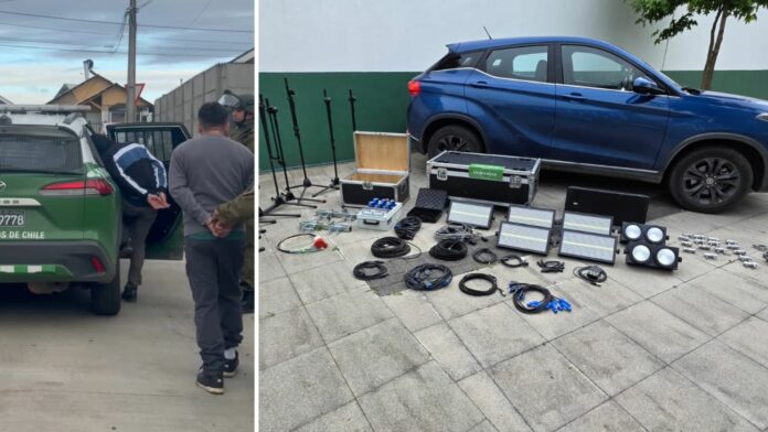 De acuerdo a la informado por noticiaslosrios.cl, Carabineros de la sección SIP de la Tercera Comisaría de La Unión detuvo a tres adultos, dos hombres y una mujer, en un procedimiento que permitió recuperar equipamiento técnico robado y avaluado en 7 millones de pesos.