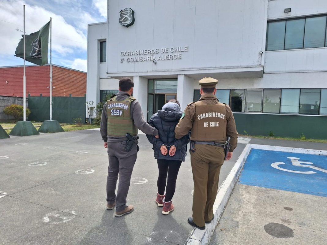 Además, se detuvo a una mujer, mayor de edad, por el delito de receptación, quien fue trasladada hasta la Sexta Comisaría de Alerce para el procedimiento de rigor y ser puesta a disposición del Juzgado de Garantía.