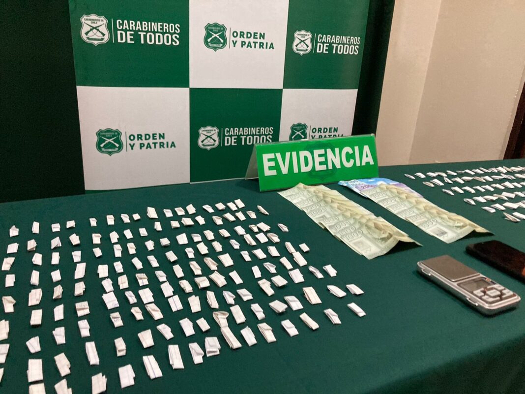 Asimismo, el oficial informó que en el interior de la vivienda donde estaban los sujetos, efectivo de Carabineros incautaron 374 envoltorios de pasta base de cocaína, la que estaba lista para su venta ilegal, además de dinero en efectivo y distintas especies asociadas al tráfico de estupefacientes.