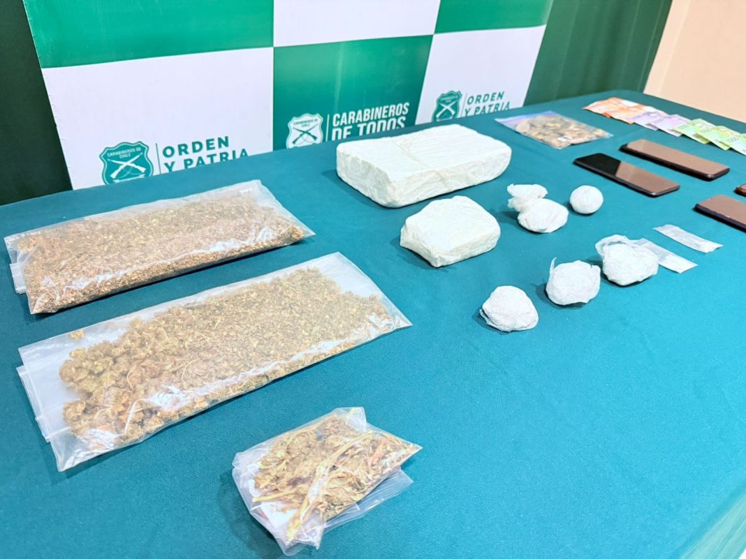 Los equipos especializados de Carabineros incautaron droga, dinero en efectivo y otras especies, mientras que la Fiscalía formalizó investigación y el detenido quedó sometido a la medida cautelar de prisión preventiva por disposición del Juez de Garantía, revocándole el beneficio de libertad vigilada con que contaba el sujeto, por delitos anteriores.