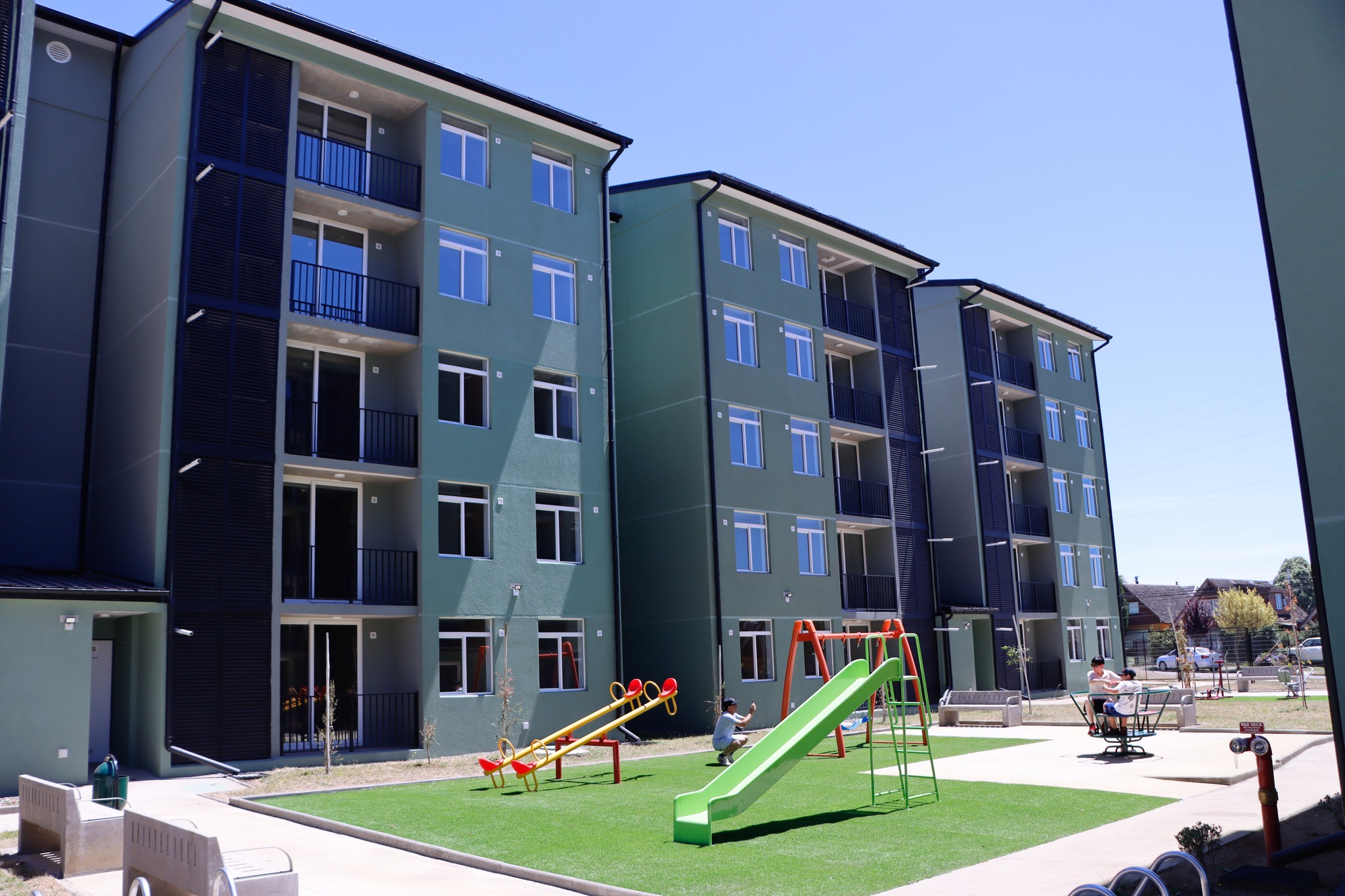 La construcción de este complejo de departamentos se pudo concretar luego que Bienes Nacionales cediera el terreno. Un trabajo silencioso pero vital para la realización de estos proyectos, indicó Paula Serrano, directora provincial de la entidad.