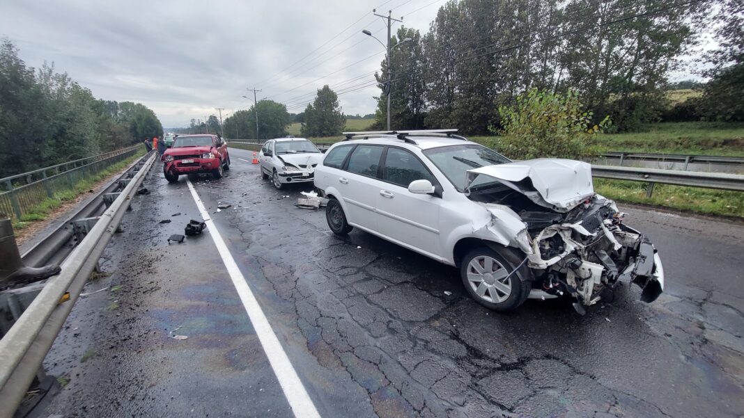 El primero de ellos fue en el kilómetro 3 de la ruta 215, cerca del acceso al aeropuerto Cañal Bajo de Osorno. Un choque en cadena, protagonizado por 8 vehículos menores, cuyos ocupantes salieron todos ilesos, fue el saldo del incidente.