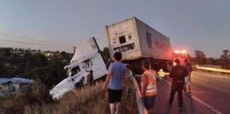 Camión de gran tonelaje a punto de aplastar vivienda tras choque...
