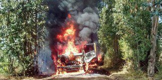 Encapuchados quemaron tres camiones de Vialidad en un nuevo ataque incendiario...