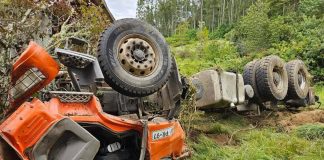Volcamiento de camión aljibe moviliza a Bomberos en Maullín