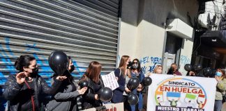 Funcionarios de Banco Estado MicroEmpresa realizan huelga exigiendo un aumento de...