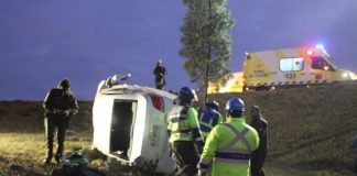 Tres lesionados en volcamiento vehicular en el ingreso de la ciudad...
