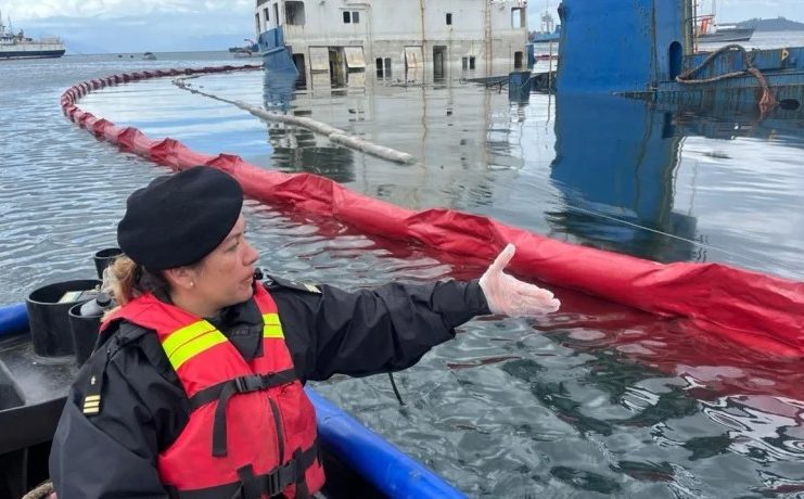 Siguen labores de contención de derrame de combustible desde buque escorado en Puerto Montt