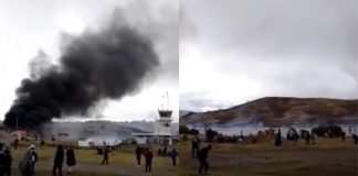 Manifestantes toman 50 rehenes y queman un aeropuerto en Perú