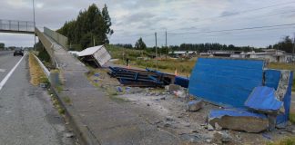 Camión choca y destruye paradero en el sector Colonia La Radio...