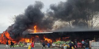 Incendio arrasó con cinco locales comerciales en la Feria Lagunitas de...