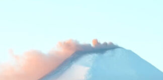 Volcán Villarrica amaneció con visible fumarola y expulsando cenizas desde su...