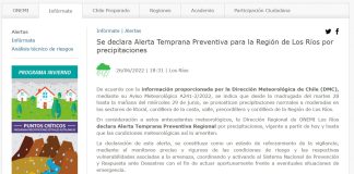 Onemi declara Alerta Preventiva Regional para Los Ríos por pronóstico de...