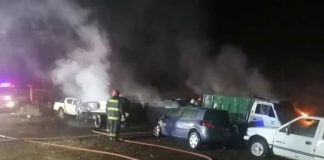 Desconocidos queman al menos ocho vehículos en ataque a recinto de...