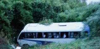 Bus del recorrido Puelo-Puelche desbarranca en el sector de Llaguepe en...