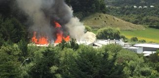 Voraz incendio consumió planta quesera de Lácteos Puerto Octay
