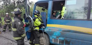 Choque entre camión y minibus escolar deja 5 lesinados