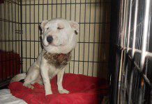 Amarrado con una cuerda de nylon, y en grave estado de deshidratación y con una laceración en su cuello, fue encontrado un pequeño perro...