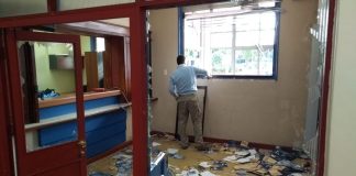 Completamente saqueada y destrozada resultó la oficina del cantón de reclutamiento