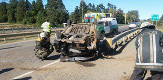 Auto volcó en Km.3 de Ruta T-215 en Osorno. Ocupantes salvaron...