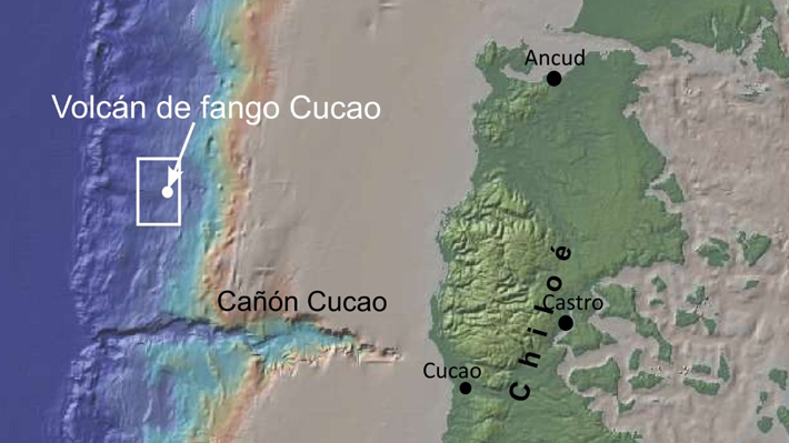 Los científicos científicos descubrieron una estructura circular de 1,5 kilómetros de diámetro y un cráter de 450 metros de ancho y 80 de profundidad en las costas de la isla, la que denominaron «Volcán de Lodo de Cucao».